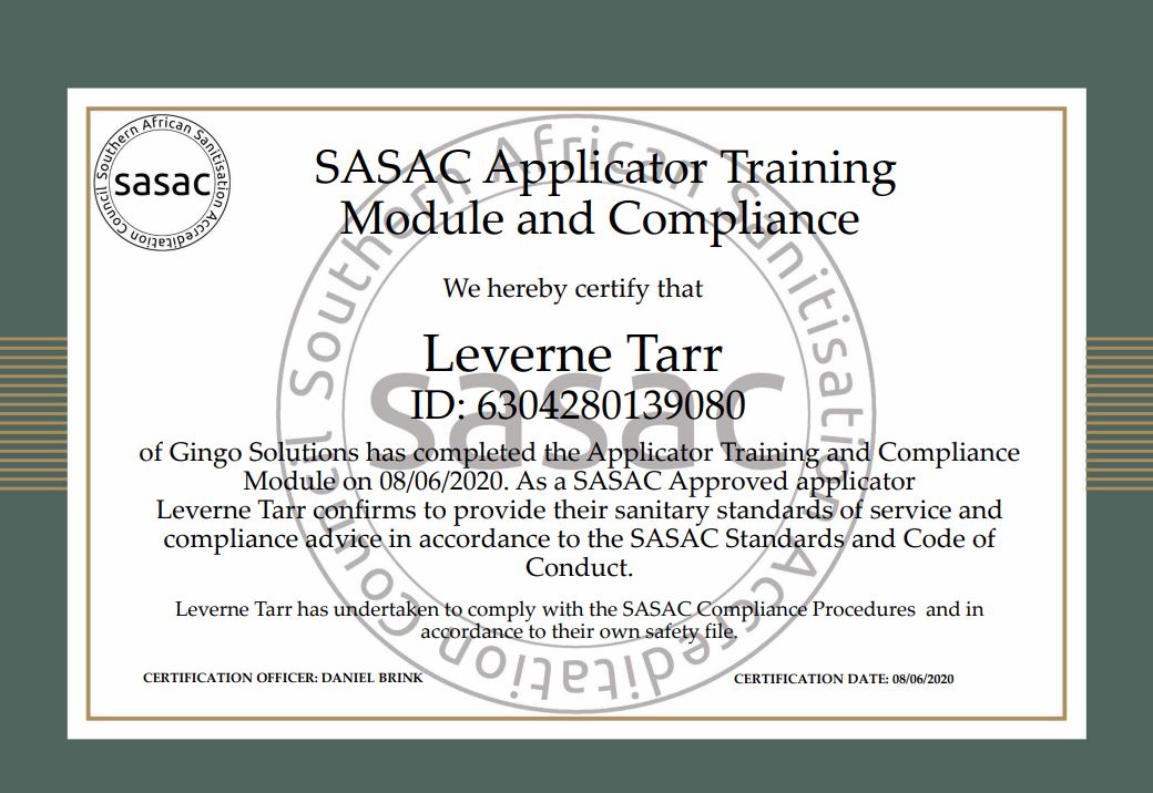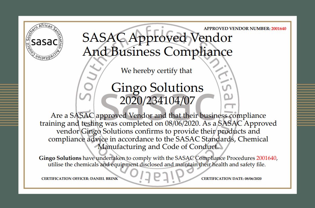 We are certified with the South African Sanitation Accreditation Council. (SASAC)